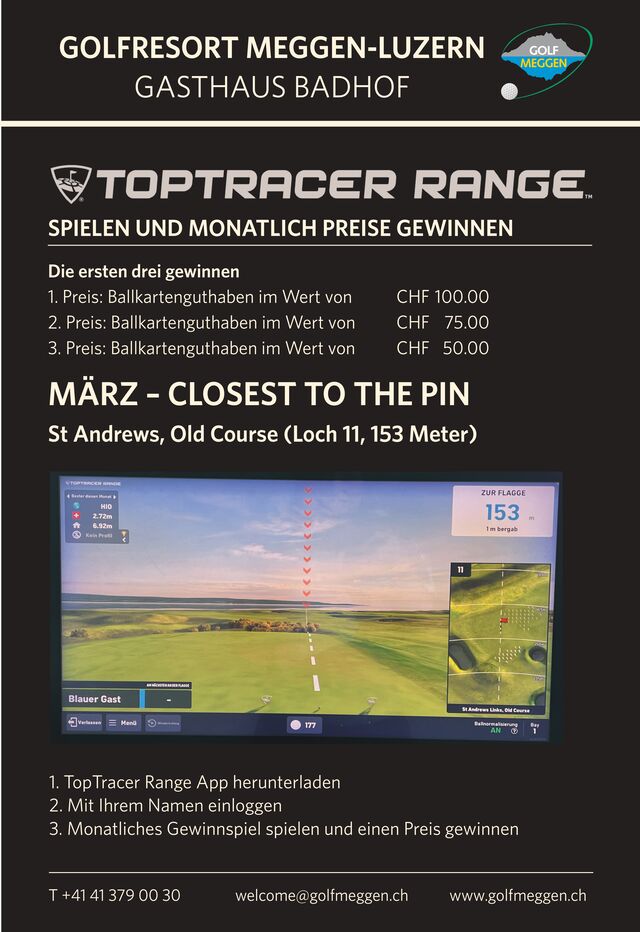 Toptracer App herunterladen, sich mit seinem Namen einloggen und bei uns auf der Driving Range am monatlichen Gewinnspiel mitmachen.